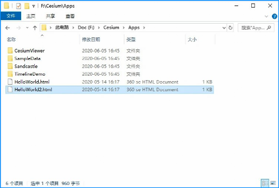 通过关注公号“水经注GIS”并回复“cesium”可获取Cesium源码文件,解压后在“Cesium\Apps”目录中,已经为你提供了“HelloWorld2.html”源码文件,但需要特别注意的是需要将IP地址改为本机IP地址(前文我们已经提到过了获取本机IP的方法),如下图所示。