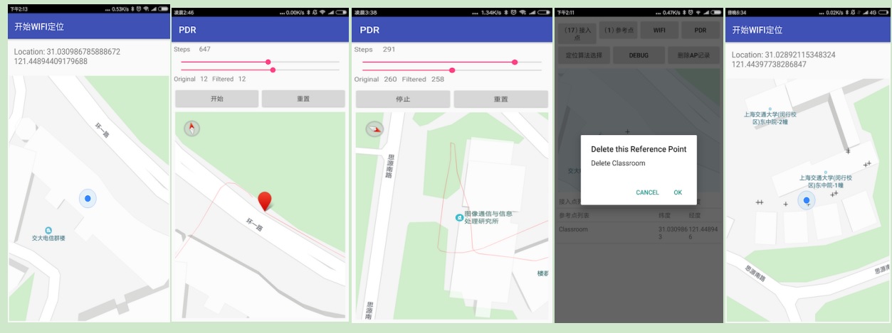 - 在Android手机上设计并实现了一个基于位置指纹的WI-FI室内定位系统,并在真实的WI-FI环境实现相关算法及其最优的参数选择;