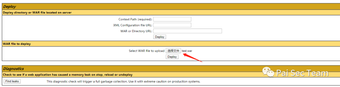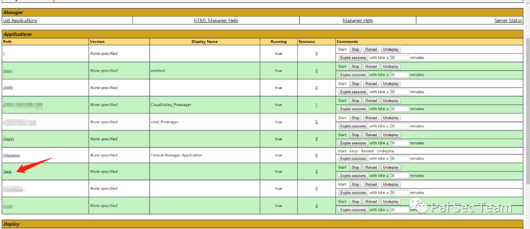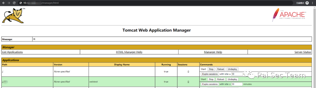 利用Tomcat Web Application Manager后台弱口令进入管理后台界面,部署war后门文件。
