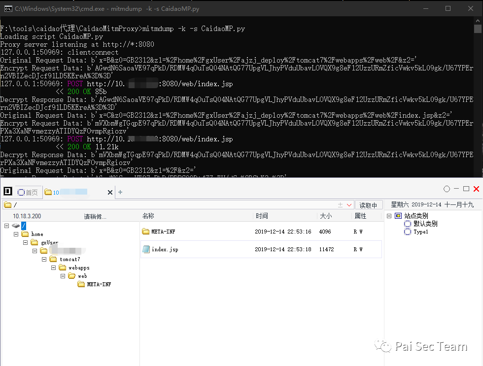 客户端使用GET请求获得的密钥对paylod进行AES加密然后进行base64编码,cookie以POST方式发送至服务器端,并将执行结果取回(如果结果是加密的,则进行AES解密)。服务端会通过客户端传来cookie值的session获得客户端的密钥进行解密。