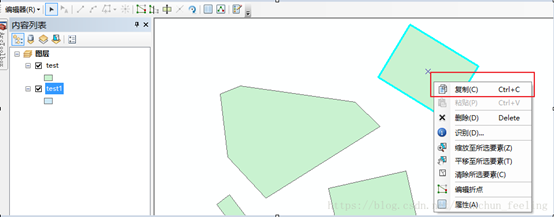 1、打开ArcMap,加载你需要复制的图层,选中后按Ctrl+C进行复制: