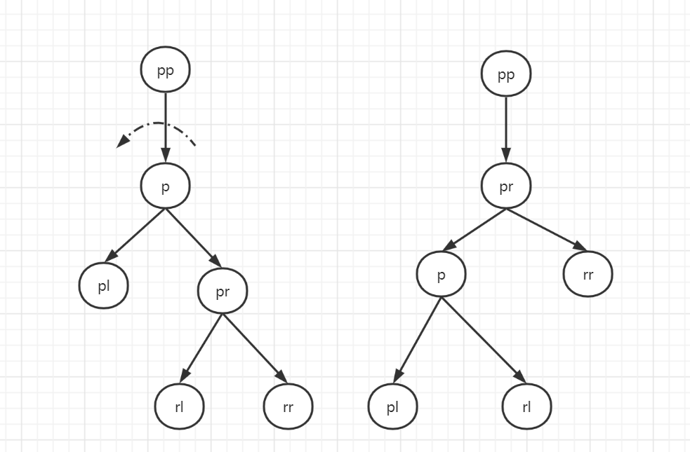 p节点若为根节点,则旋转后新的根节点为p节点的右孩子