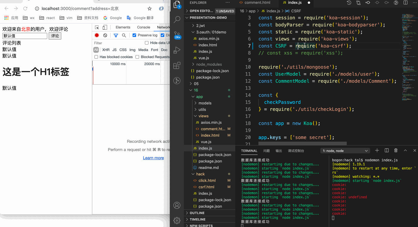 }));...router.get('/comment', async (ctx) => {const commentList = await CommentModel.getCommentList();await ctx.render('comment', {address: ctx.request.query.address,commentList: JSON.parse(JSON.stringify(commentList)),csrfToken: ctx.csrf,});