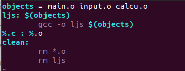 ljs: main.o input.o calcu.o gcc -o ljs main.o input.o calcu.o