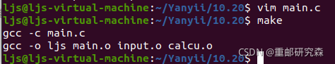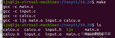 可执行文件ljs依赖于这三个.o文件,然后对这三个.o文件进行编译