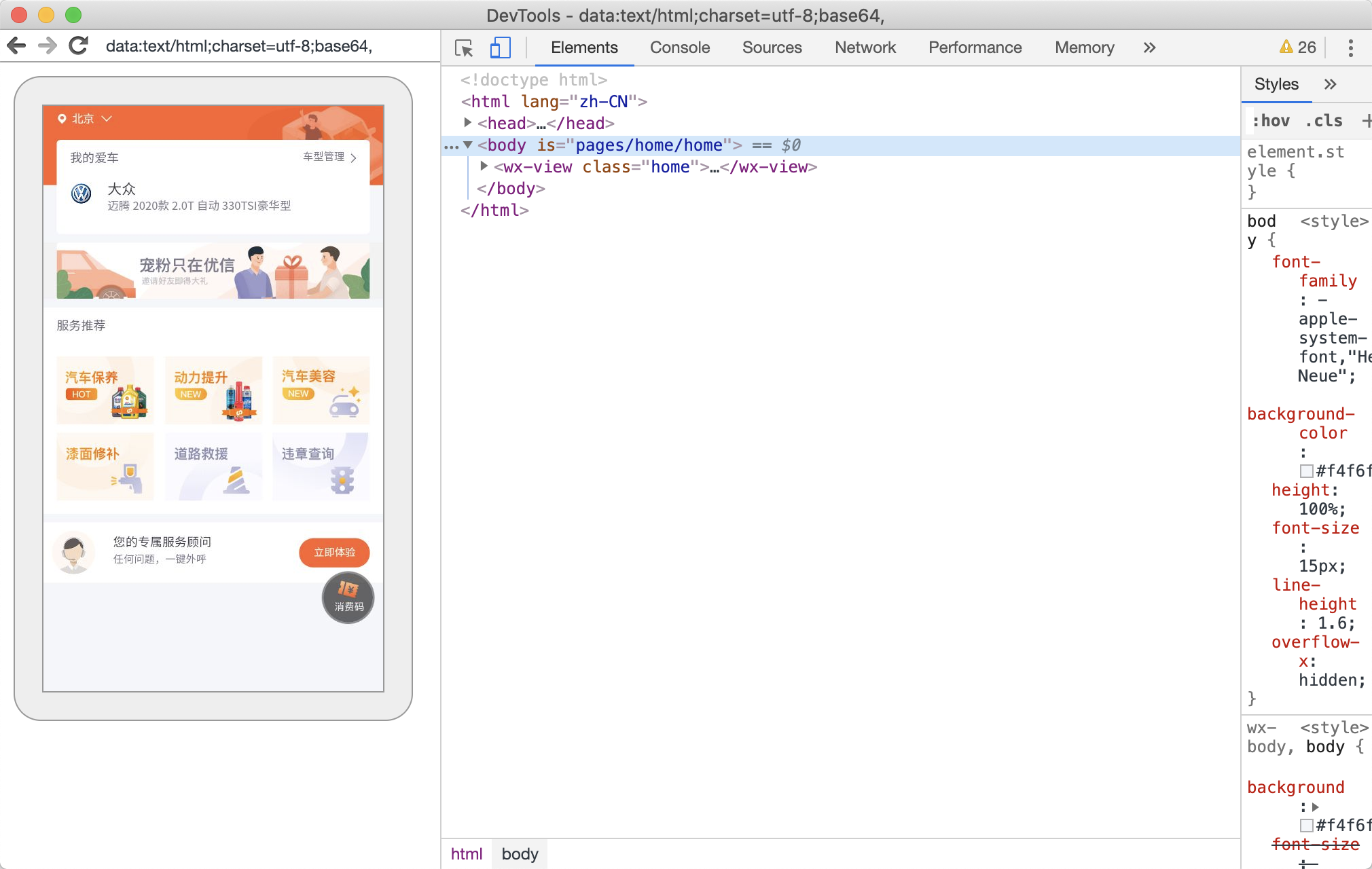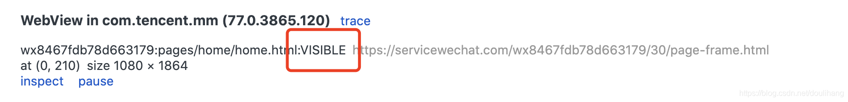 3)点击句柄中包含VISIBLE的WebView下面的inspect按钮,弹出如下页面