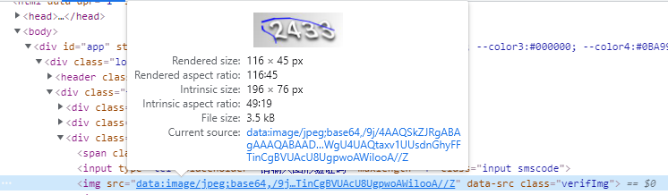 我们看到了,这个验证码图片是使用Base64编码后嵌入网页源代码的,这种图片,我们即使想对其进行ocr分析,也不方便。