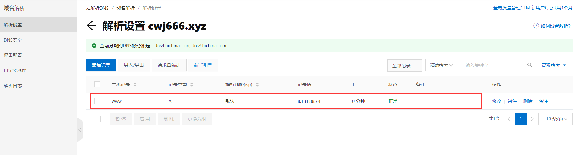 上面部署命令之后,我们就可以通过IP来访问项目了,但是我们项目一般通过域名提供给用户来进行访问,这就是为什么前面要进行域名解析。