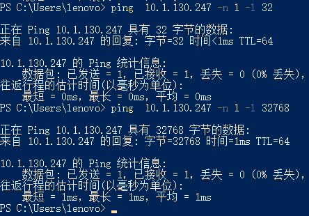 32 byte 数据包和 32kb的数据包的TTL都是相同的,都是64