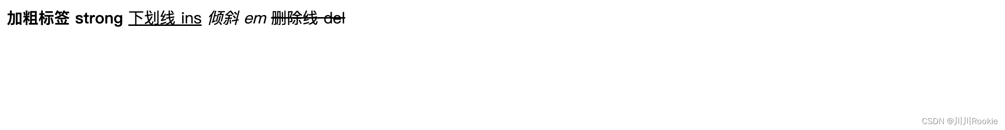 加粗标签 strong下划线 ins倾斜 em删除线 del
