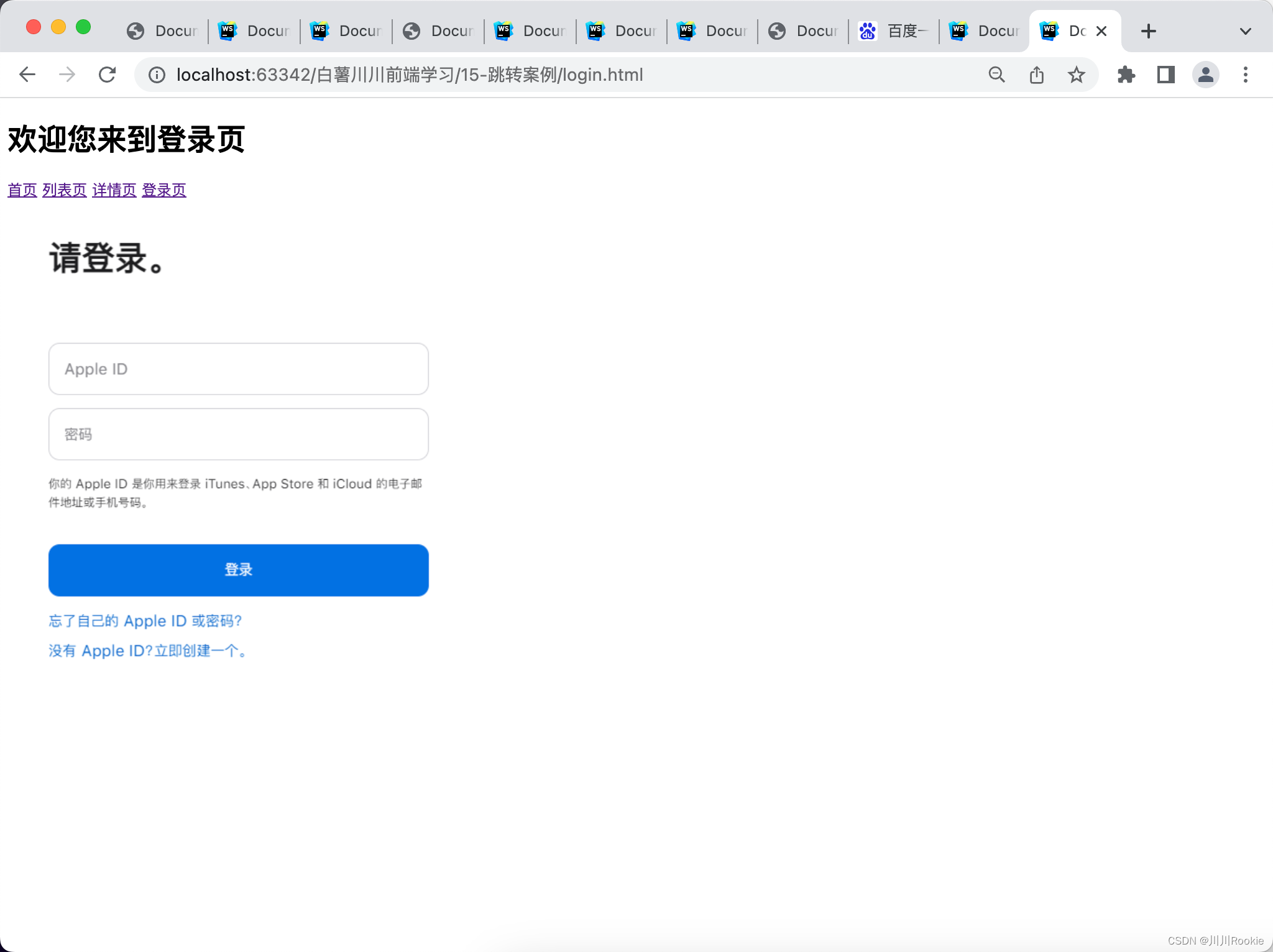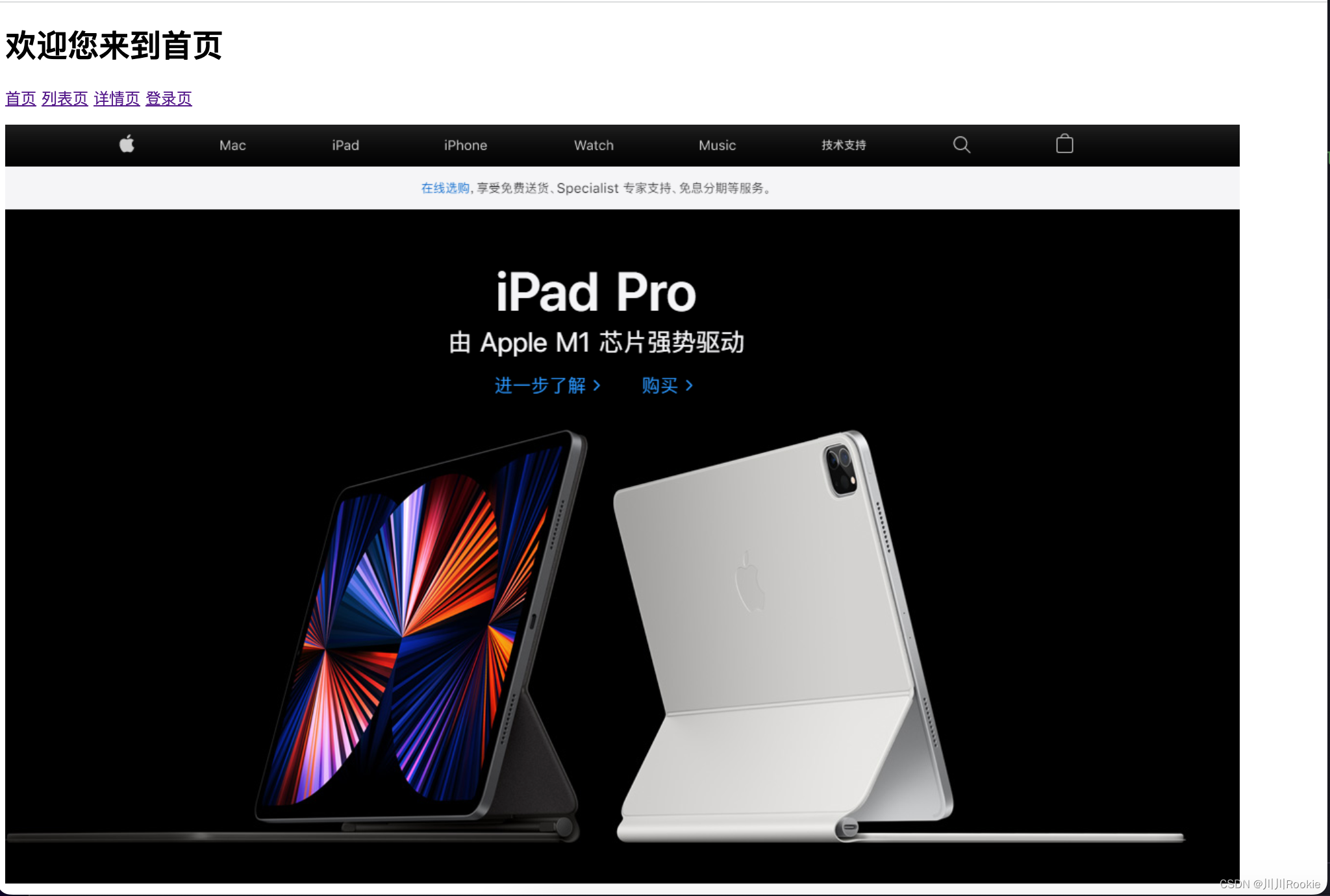 常用语网页的跳转就比如你在购物京东,点击一个商品他就会跳转到相对应的页面,运行看看: