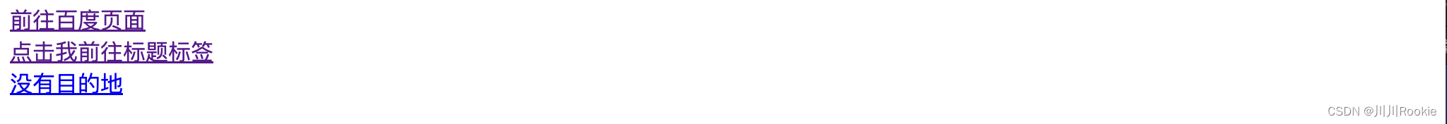 他就会直接跳转到百度官网页面,其他的同理,第二个是内部跳转,第三个就是空链接哪里都不跳转没有目的地。