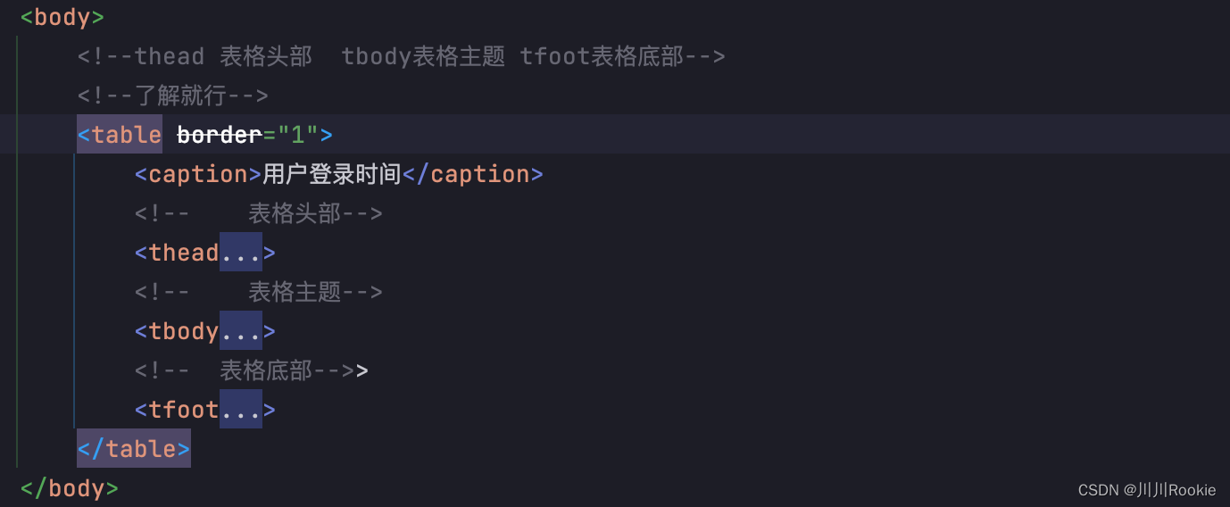 相关属性:thead(头部) tbody(内容) tfoot(底部)