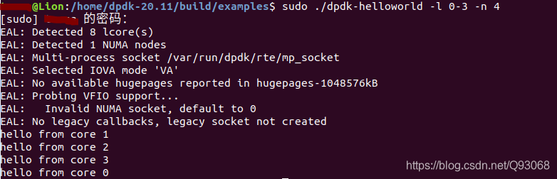 ./dpdk-helloworld -l 0-3 -n 4