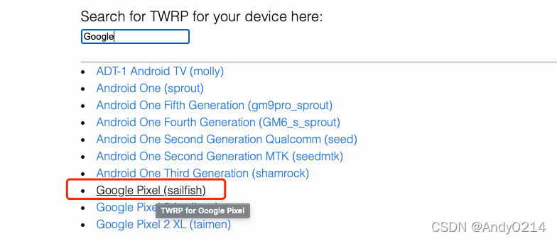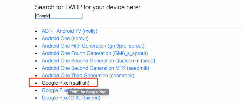 对应自己的手机硬件去下载对应的 twrp 第三方rec, 下载好的 twrpXXX.img路径最好为全英文路径。比如我下载的是“twrp-3.2.1-0-sailfish.img”