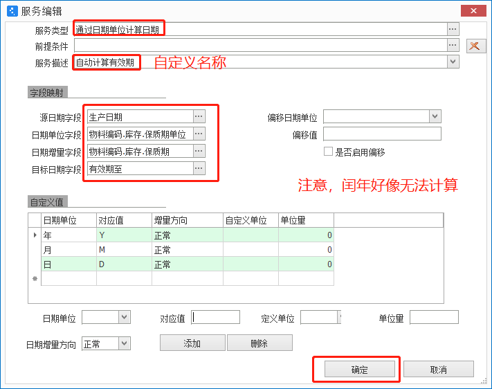 1、根据物料保质和生产日期,自动计算有效期
