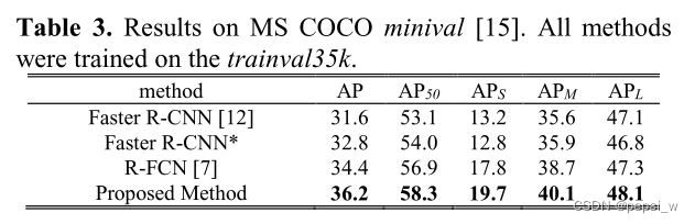所有模型都在训练集和验证图像子集 ( trainval35k )的联合上进行了训练,结果如下表:本文提出的模型与同样二阶段网络对比,所有指标至少提高了 0.8 个点。