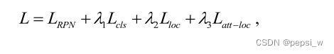 其中λ 1、λ 2和λ 3是控制损失函数的超参数,L RPN、L cls和L loc分别是RPN 、目标分类和目标定位的损失函数。L cls是 ( C +1) 个类别上的 softmax 交叉熵损失。将用来学习目标的边界框位置 ( x, y, w, h )的smothed L1 损失记作L loc。在L att -loc , sigmoid 交叉熵损失用于制作目标定位的注意力图以激活目标的整个区域。