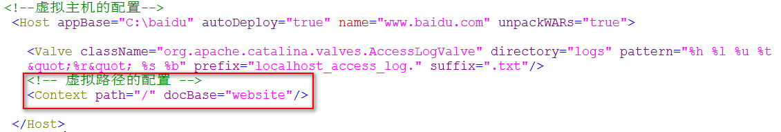 - 二种:在tomcat/conf/server.xml配置tomcat的虚拟路径