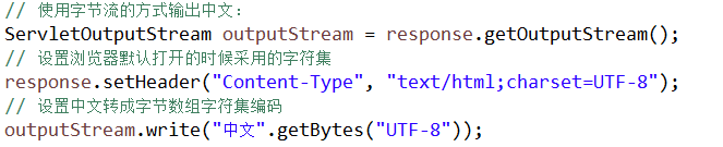 - 将中文转成字节数组的时候和浏览器默认打开的时候采用的字符集一致即可。
