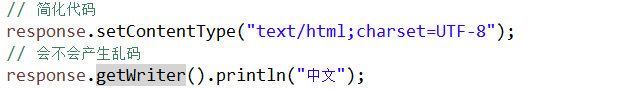 public class ResponseDemo3 extends HttpServlet {protected void doGet(HttpServletRequest request, HttpServletResponse response) throws ServletException, IOException {test2(response);}/*** 使用字符流输出中文* @param response* @throws IOException* @throws UnsupportedEncodingException*/private void test2(HttpServletResponse response) throws IOException, UnsupportedEncodingException {// 设置浏览器默认打开的时候采用的字符集:// response.setHeader("Content-Type", "text/html;charset=UTF-8");// 设置response获得字符流的缓冲区的编码:// response.setCharacterEncoding("UTF-8");// 简化代码response.setContentType("text/html;charset=UTF-8");// 会不会产生乱码response.getWriter().println("中文");}/*** 使用字节流输出中文* @param response* @throws IOException* @throws UnsupportedEncodingException*/private void test1(HttpServletResponse response) throws IOException, UnsupportedEncodingException {// 使用字节流的方式输出中文:ServletOutputStream outputStream = response.getOutputStream();// 设置浏览器默认打开的时候采用的字符集response.setHeader("Content-Type", "text/html;charset=UTF-8");// 设置中文转成字节数组字符集编码outputStream.write("中文".getBytes("UTF-8"));}protected void doPost(HttpServletRequest request, HttpServletResponse response) throws ServletException, IOException {doGet(request, response);}