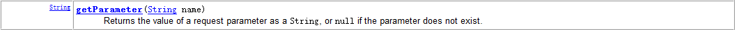 String | getParameter(String name)以 String 形式返回请求参数的值,如果该参数不存在,则返回 null。 |