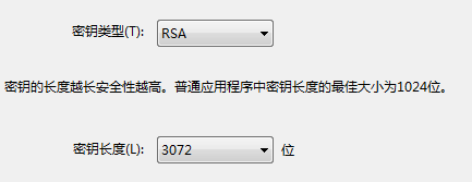 2,秘钥类型(Key Tpye)->RSA 秘钥长度(Key Length)->3072