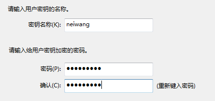 3,秘钥名称自拟(比如:neiwang) 密码自拟(建议8位以上无规则大小写字母+数字组合)
