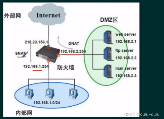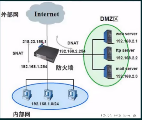 ①内部接口( Inbound)连接内网和内网服务器。