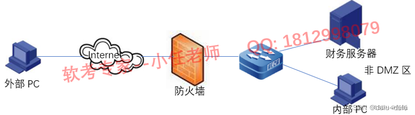 防火墙位于内、外网之间时,防火墙分为三个区域,外部网络、内部网络以及DMZ区域。