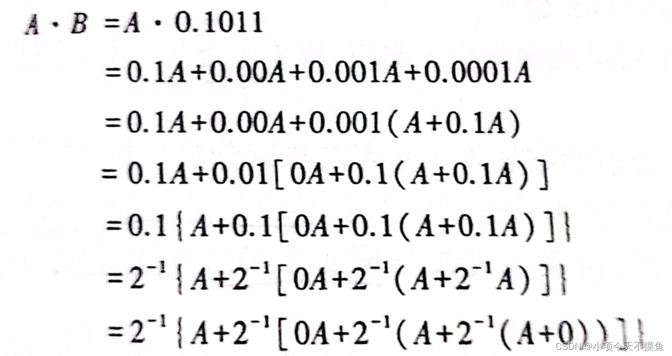 由此可得:两数相乘的过程可以看为加法和移位的过程两种运算(2^-1可以看做向右移位),这对计算机来说是非常容易实现的。