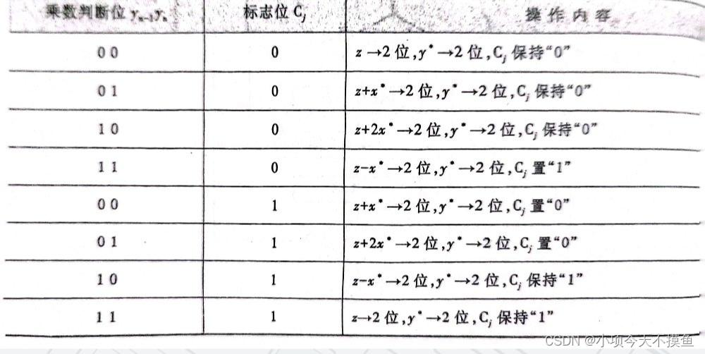 两位乘数结合Cj寄存器共有三位,共有八种情况,如下: