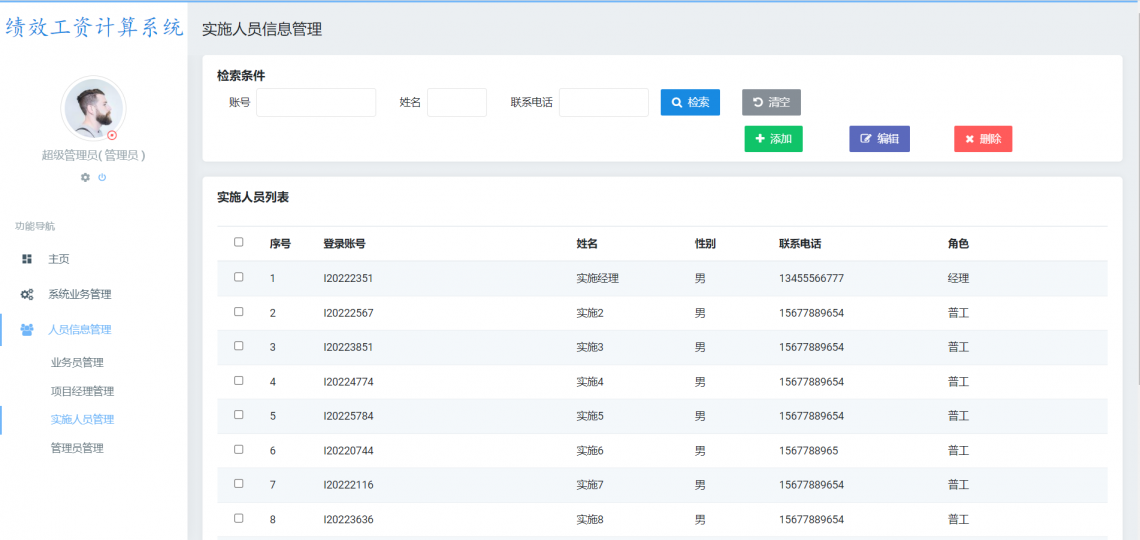 1、人员信息管理(管理员):