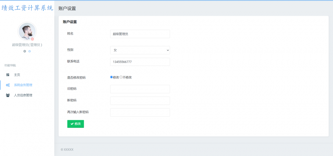 2. 密码修改:为保证密码的安全性,需要定期进行修改,所以在登录自己账号权限的情况下,可以在资料维护模块进行密码的修改。