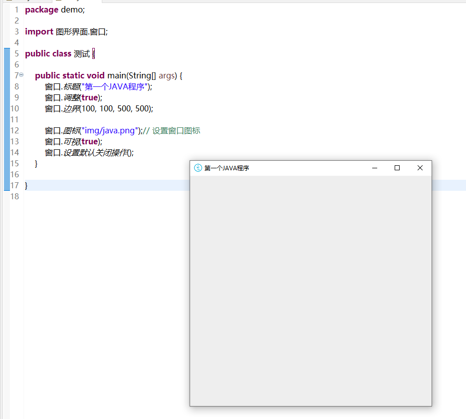 7).调试运行效果,可以看出窗口的图标已经正常显示:
