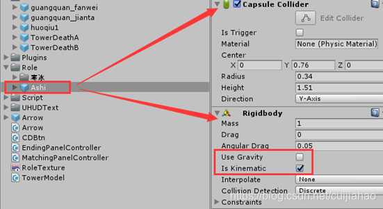 炮塔勾选触发器,角色身上必须添加刚体,刚体不受力的作用,因为只是用来发生碰撞