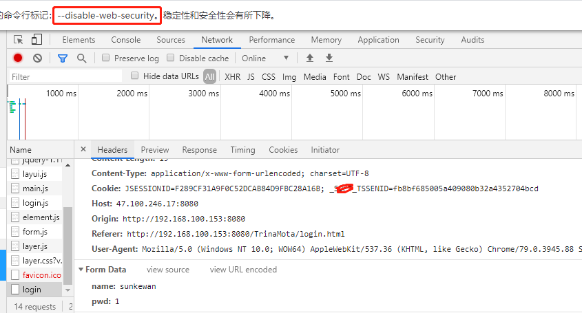 form.on('submit(hug_adminLogin)', function(data) {console.log(data.field)// 登录$.ajax({type: "post",url: 'http://xx.xxx.xx.xxx:8080/xxxx/syssetup/login',data: {name : 'xxxx',pwd : 'x'},dataType: "json",xhrFields: {withCredentials:true},crossDomain: true,success: function(res){console.log(res);if(res.code == 200){layer.msg(res.msg);}else{layer.msg(res.msg);}}});})