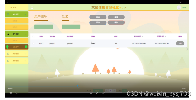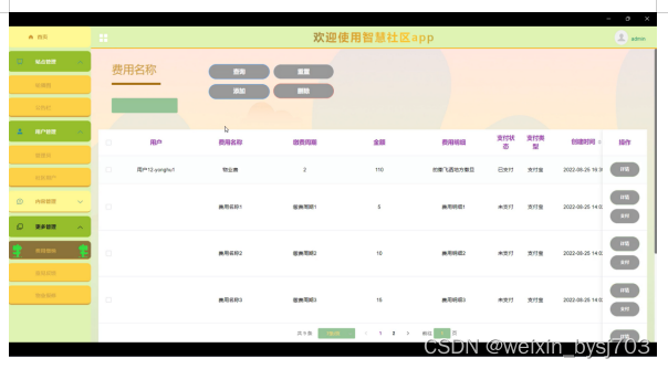 This paper systematically depicts the entire smart community APP, the main functions are the following points: home page, site management (carousel map, bulletin board), user management (administrator, community users), content management (community forum, forum classification, community information, information classification), more management (fee payment, feedback, property repair) and other functions, the system administrator is mainly for the safe and effective storage and management of various types of information, but also the system management and update maintenance and other operations, And there are corresponding operation permissions for the background.