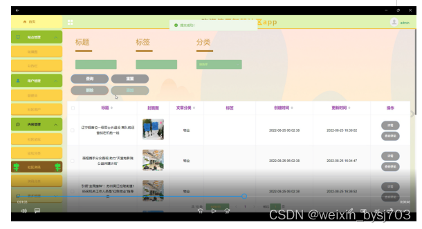 2. 系统功能还不够完善,无法提供丰富多彩的在线功能,只能实现首页、站点管理(轮播图、公告栏)、用户管理(管理员、社区用户)、内容管理(社区论坛、论坛分类、社区资讯)、更多管理(费用缴纳、意见反馈、物业报修)等一系列功能。
