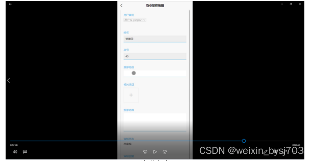 物业报修,在物业报修页面可以查看到:用户编号、姓名、房号、报修物品、相关凭证、报修内容、审核状态、审核回复等信息进行确认提交,还可在我的发布进行查看修改删除等操作,如图4-11所示。