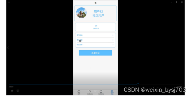我的,在我的功能界面可查看信息费用缴纳、意见反馈、物业报修等功能,如图4-9所示。