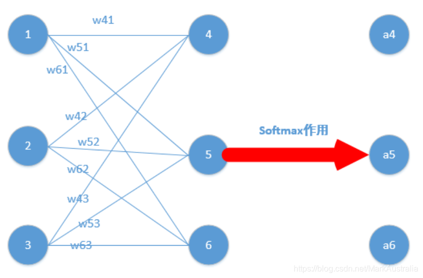 softmax公式:ai = e^oi / sum(e^oj); i为4, 5, 6中的一个,j取值4,5,6