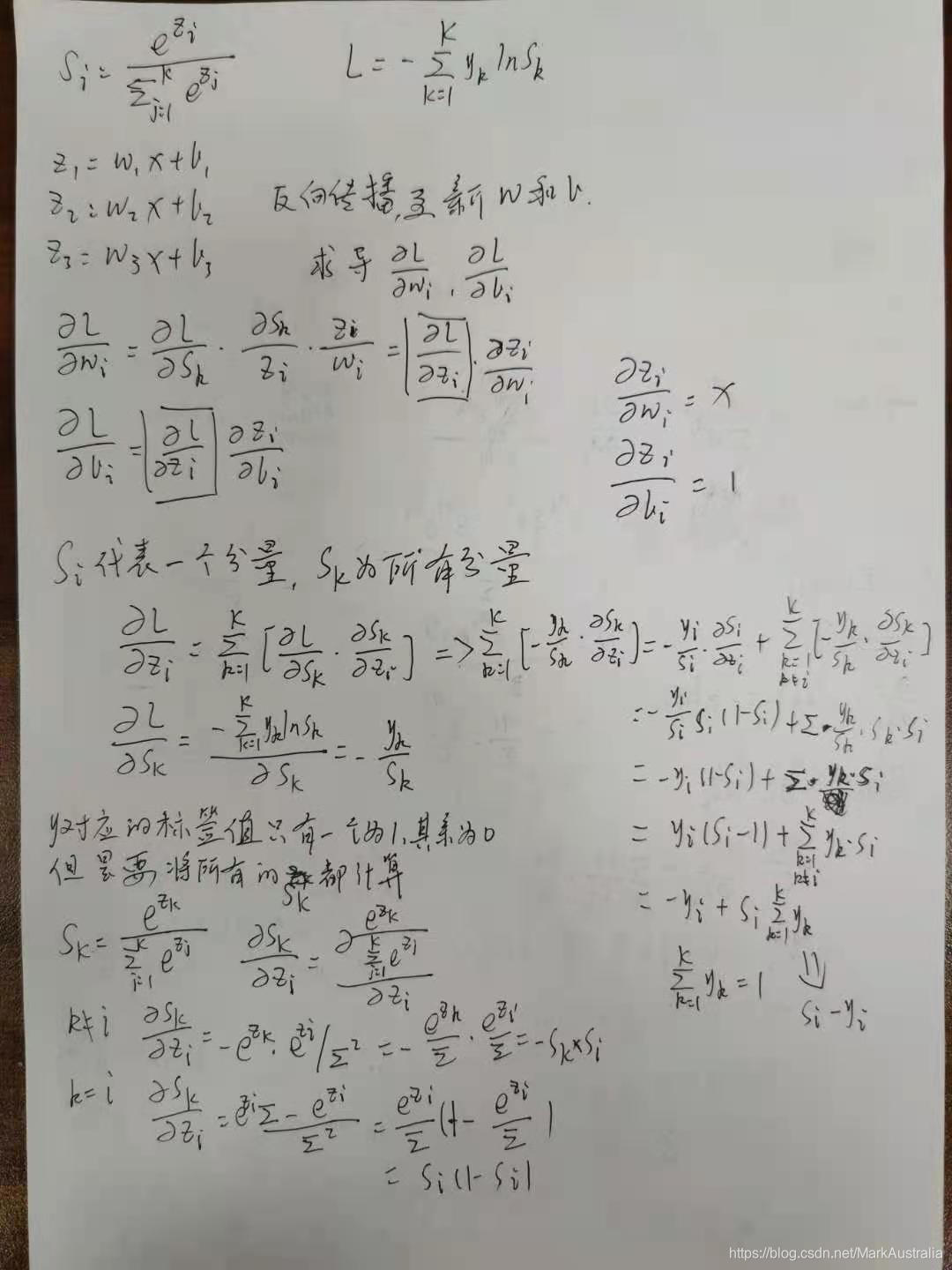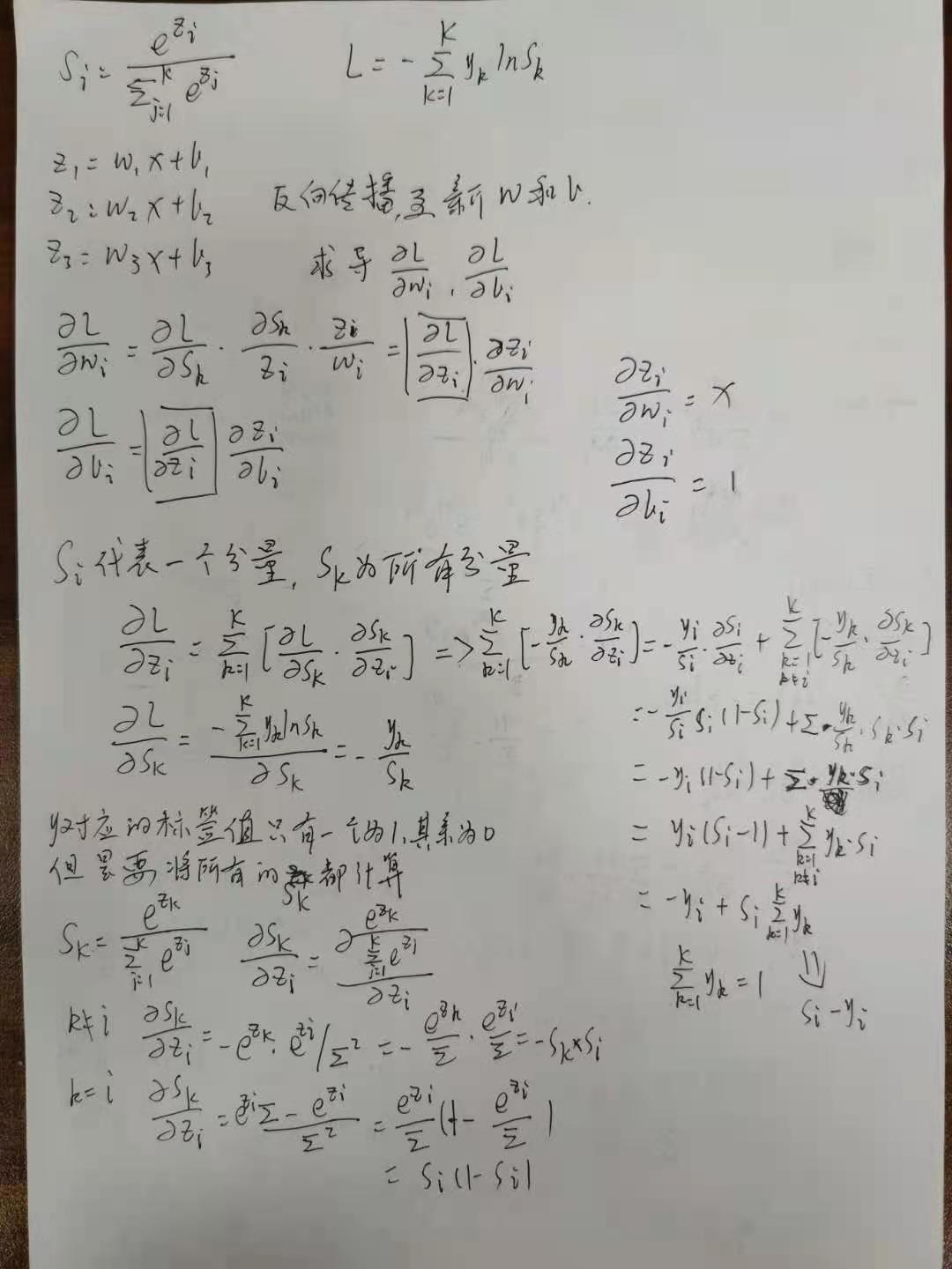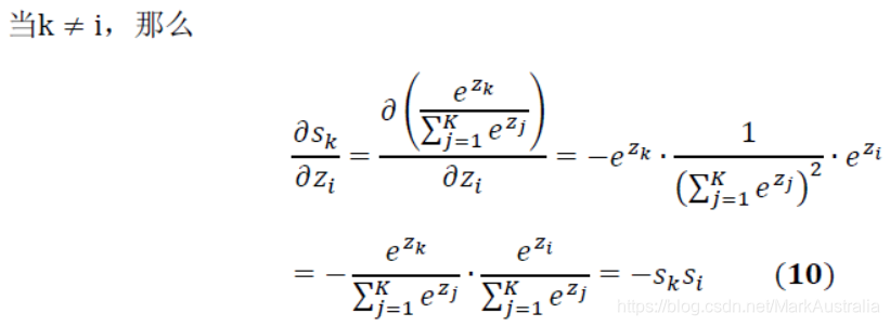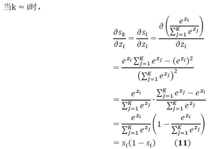 这里是S为(2)公式,这个公式对zi求导,分为k=i和k!=i两种情况
