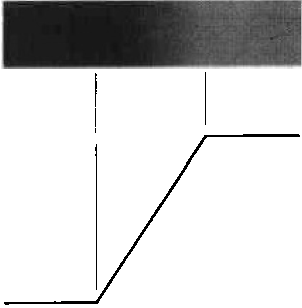 但是在实际情况中,数字图像可能被模糊或者是带有噪声,此时的边缘模型更接近斜坡边缘模型,灰度级的过渡存在一个较宽的区域,也就不存在一个较为明显的分界线,如下图所示: