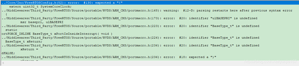 2. Keil 编译的时候遇到很多错误, 可是那个文件不可能错误, 这种情况很可能是自定义的头文件的最后一个函数分号忘记敲了;