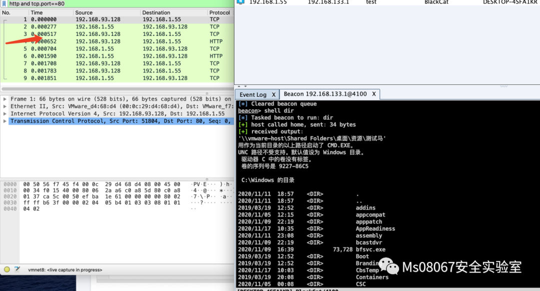4.执行完毕后beacon将回显数据与任务id用post方式发送回team server端的C2(细节可以在malleable_profile文件中的http-post部分进行自定义),然后又会回到睡眠状态。