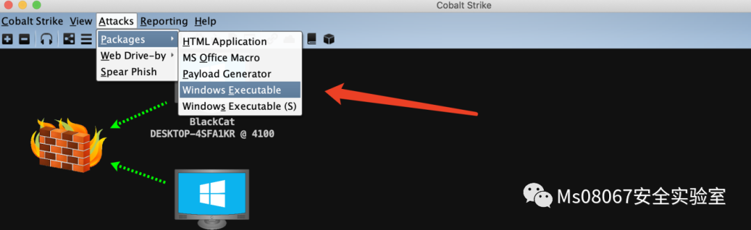 然后点击 Attacks-- packages -- Windows Executable