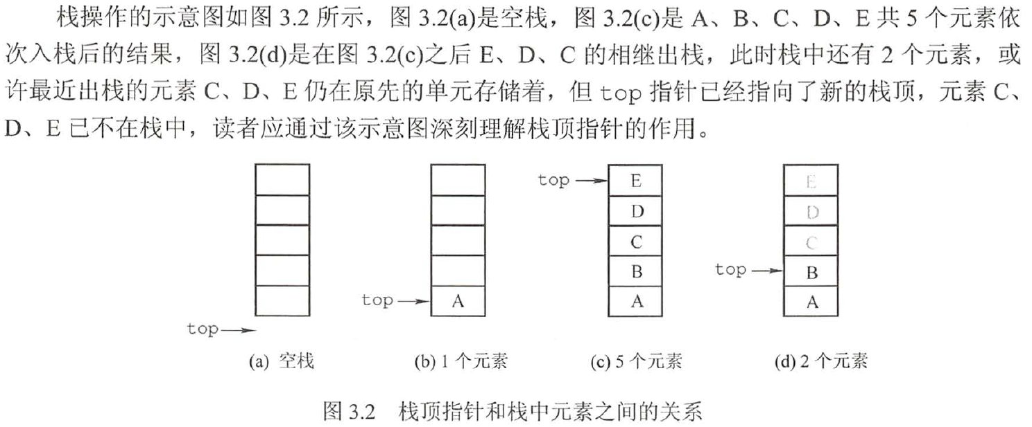 s.top,初始时设置s.top= - 1;栈顶元素:s.data[s.top]。- 进栈操作:栈不满时,栈顶指针先加1 ,再送值到栈顶元素。
