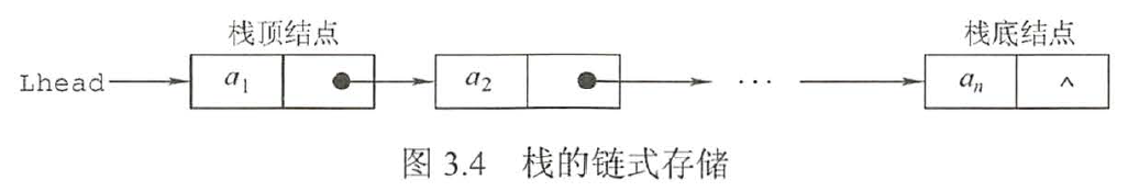 ►采用链式存储的战称为链栈,链栈的优点是便于多个找共享存储空间和提高其效率,且不存在栈满上溢的情况。通常采用单链表实现,并规定所有操作都是在单链表的表头进行的。这里规定链栈没有头结点,Lhead 指向栈顶元素。